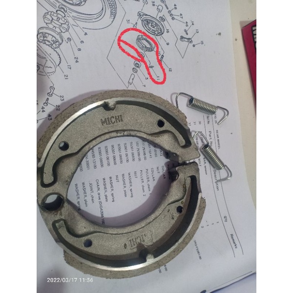 kampas rem tromol depan belakang Yamaha v75 v80 v80Ss excellent U5 U7 L2G Ls3 l2sN rs100 Alfa rx100 yl2