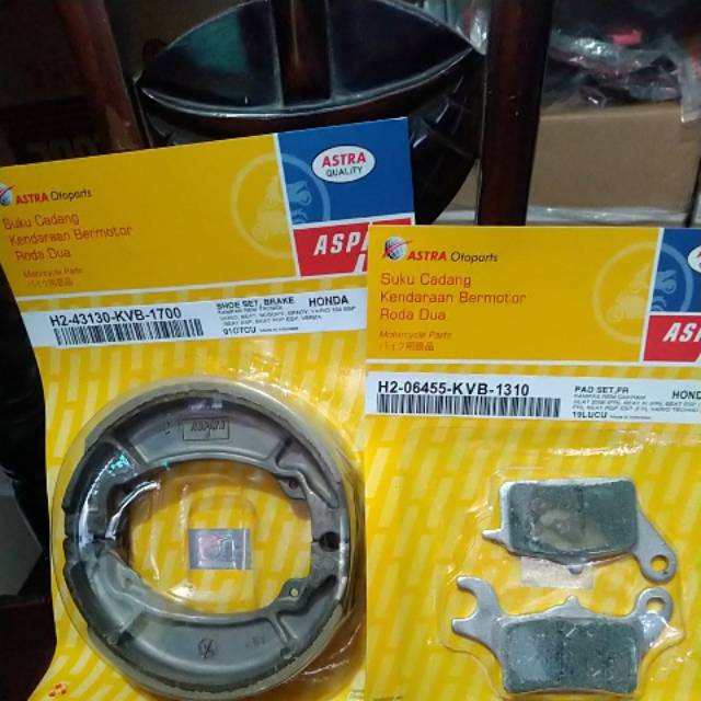 Paket kampas rem depan + kampas rem belakang aspira untuk beat Fi/ beat Esp/ Vario Techno/ Vario esp