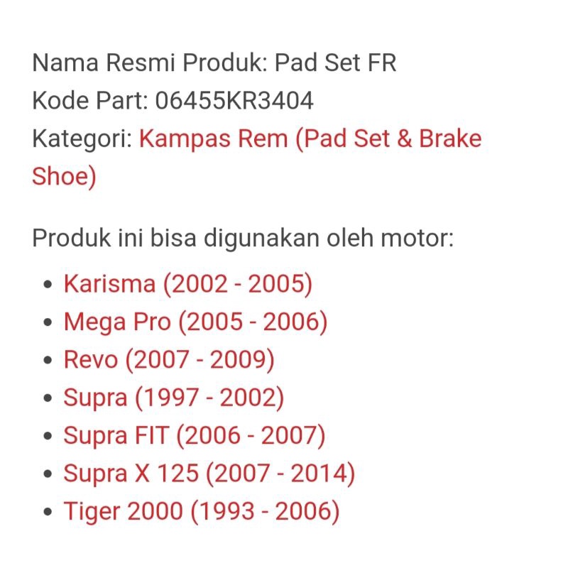 Kekurangan - Kekurangan membeli Dispad Kampas Rem Cakram Depan Supra x,supra x 125 Kharisma Revo Lama Supra Fit New KR3 di Toko ini