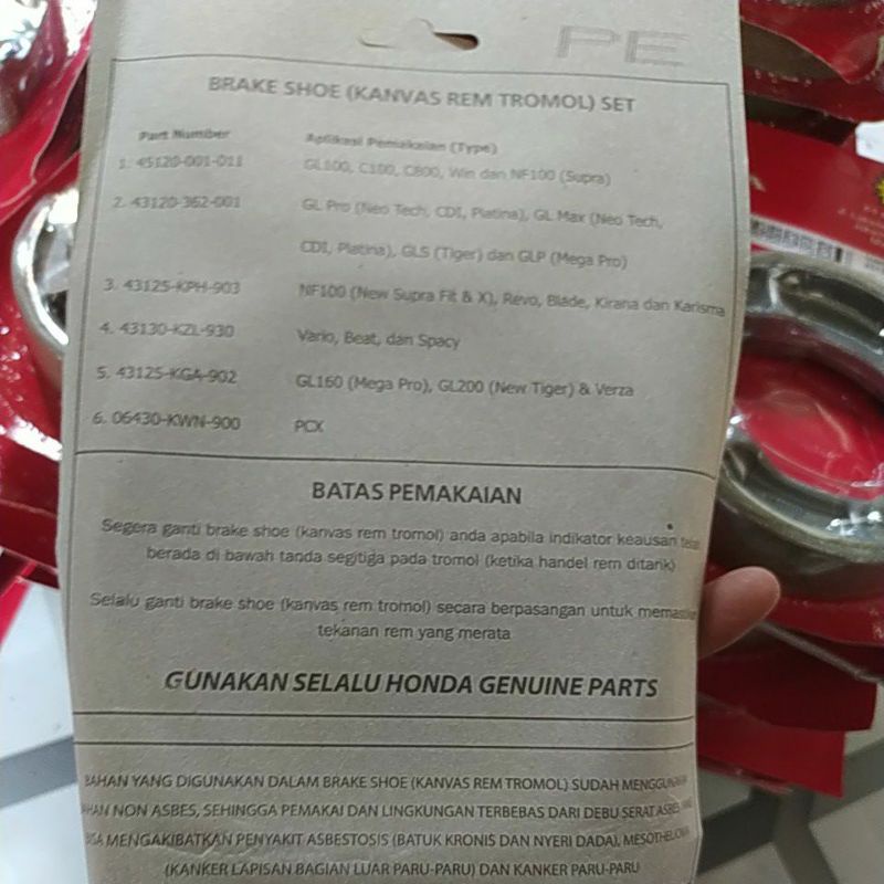 Kekurangan - Kekurangan membeli kampas rem belakang tromol 01 kzl matic honda vario beat scope spicy vario125 vario150 GENIO KZL MEGAPRO NEW PRIMUS di Toko ini