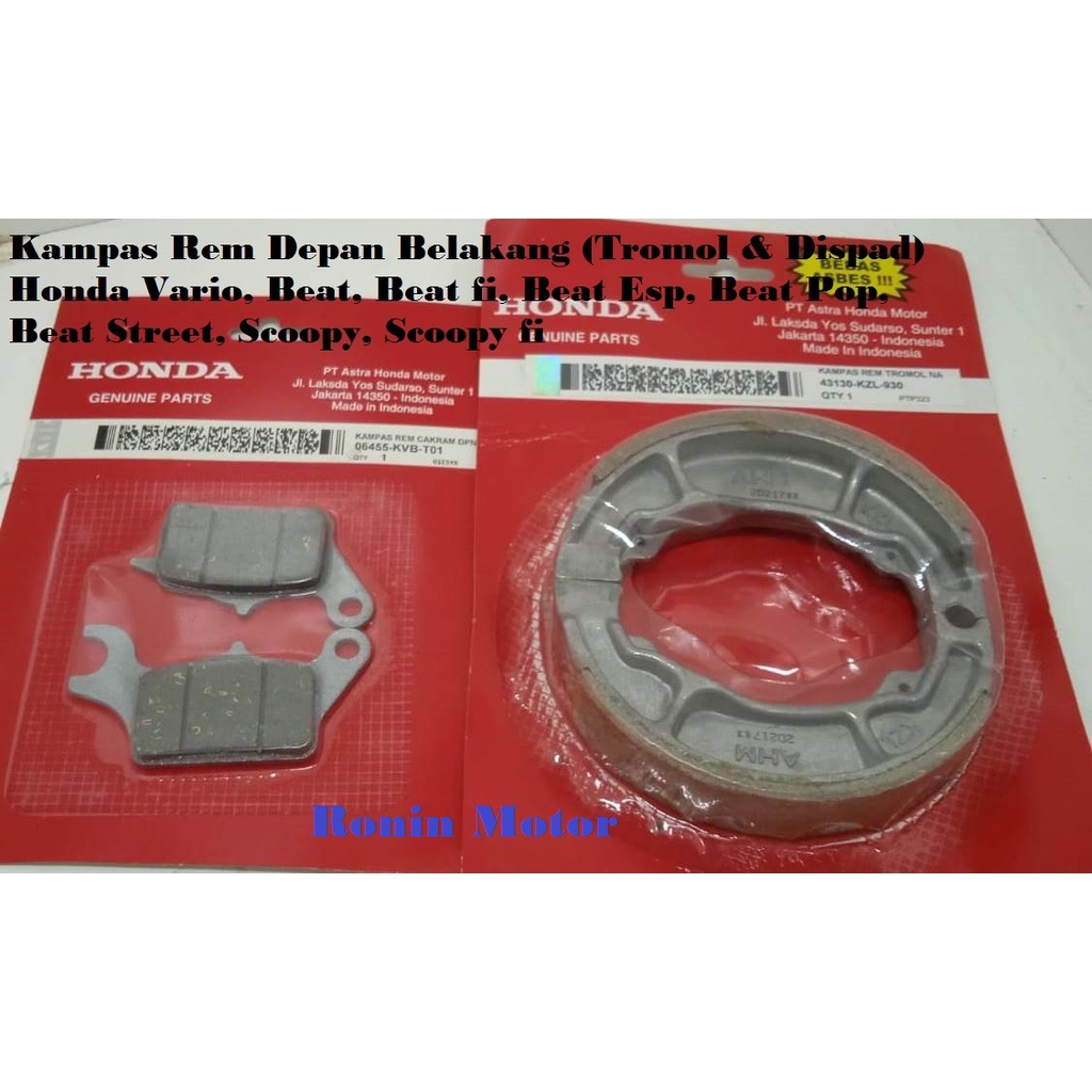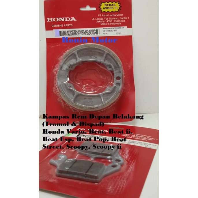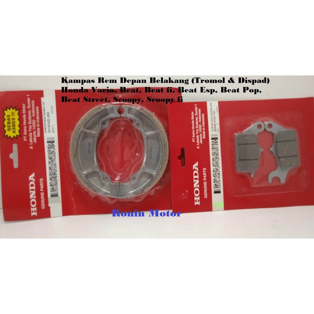Harga Kampas Rem Depan Belakang (1 set) Honda Beat, Beat fi, Beat esp, Beat Street, Scoopy, Scoopy fi